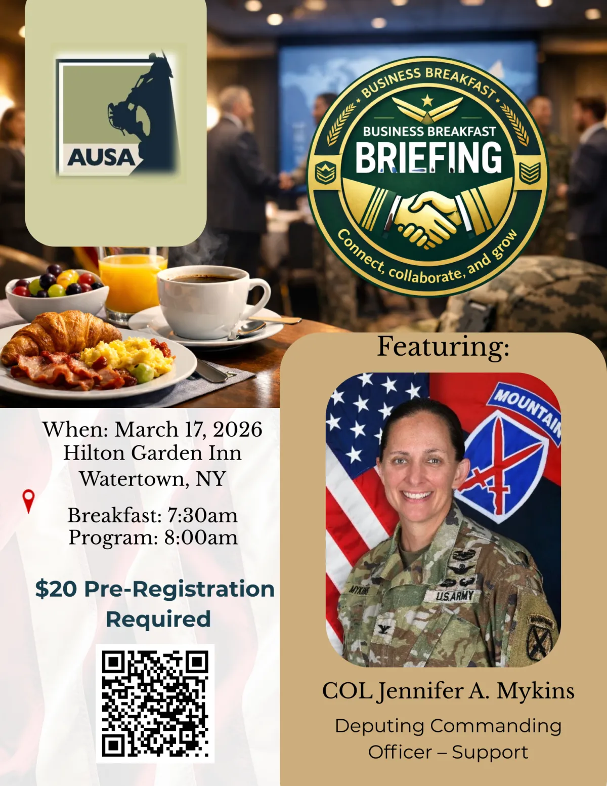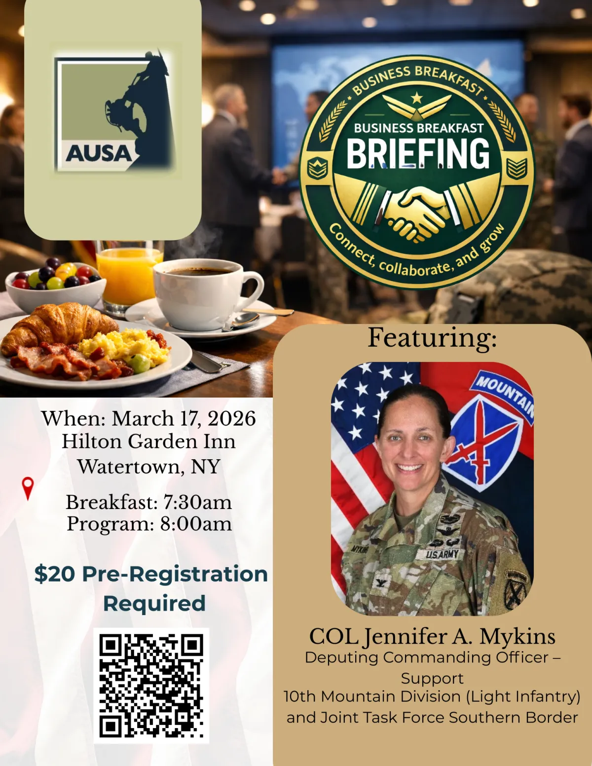 The Business Breakfast Briefing is a collaborative event designed to foster meaningful dialogue between local business leaders and senior representatives from the Army. This gathering provides a platf... ...more